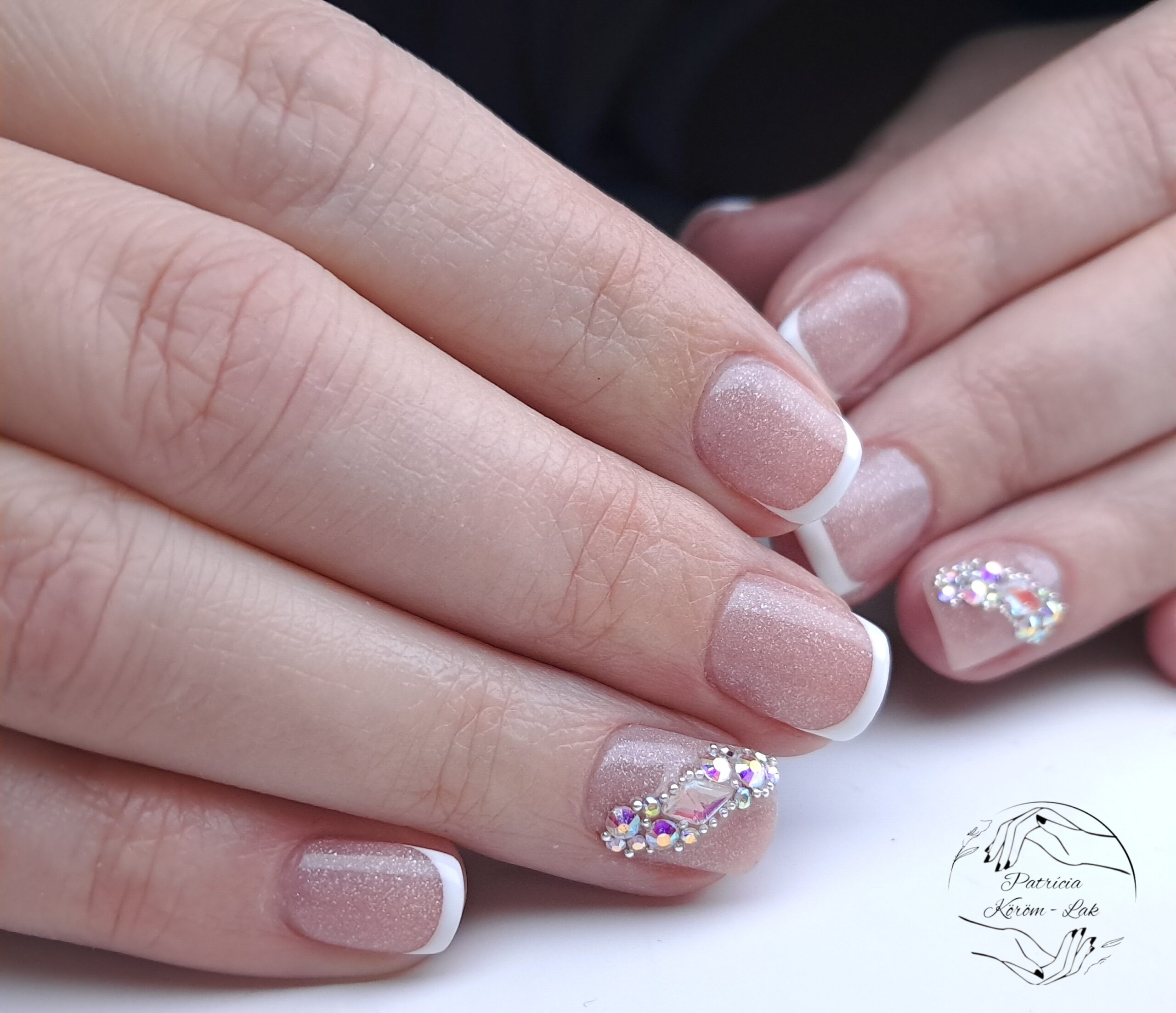 Manikűr és előkészítés után speciális anyagot viszünk fel a körömre a megerősítés érdekében. Ezt a kérésnek megfelelően színezzük és/vagy díszítjük, majd matt vagy fényes fedőfénnyel zárjuk. Radírozzuk, és ápoljuk a kezeket.